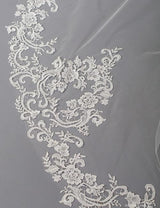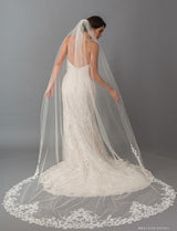 1-tier cathedral veil with rolled edge and dramatic Venise lace points