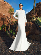 Mermaid crepe wedding dress with long sleeves and bateau neckline