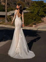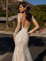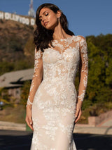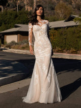 Fit & flare wedding dress in embroidered tulle with long sleeves
