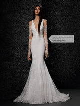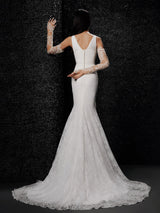 Mermaid wedding dress with lace, V-neck and long sleeves