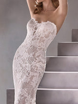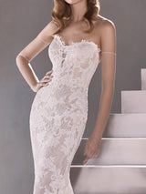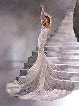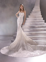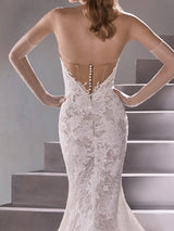 Wedding dress with a modern mermaid cut, sweetheart neckline and open back