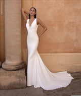 Pronovias Eureka V-neck and mermaid cut Off White Crepe  Wedding Dress