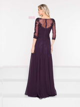 Quarter length sleeve beaded bodice with gathered top and chiffon skirt